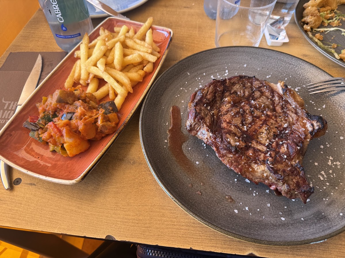 This is one of our favorite restaurants in Rota! Both locals and Americans frequent this restaurant. There are several cuts of steak to choose from, a delicious chicken kebab and other entrees, all come with a choice of two sides. Everything we’ve had has been Delicioso! There are items that are less than 20 euros, but most of the steaks are more. Everyone is friendly & efficient. They speak English well enough to assist you with your ordering.