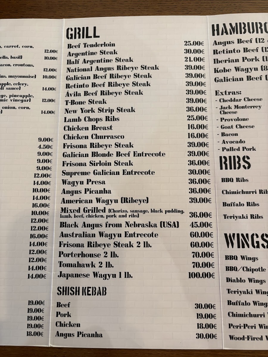 Menu favorites include dishes like the T-Bone Steak, a variety of expertly seasoned ribs, and the distinctive Hamburguesa Angus with provolone and fries. Guests can also explore specialties such as the Parrillada Mixta or regional offerings like the Chuletón de Ternera Gallega, which bring an authentic taste of the grill to the table.