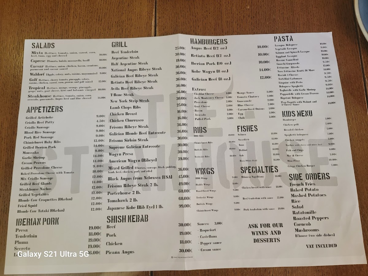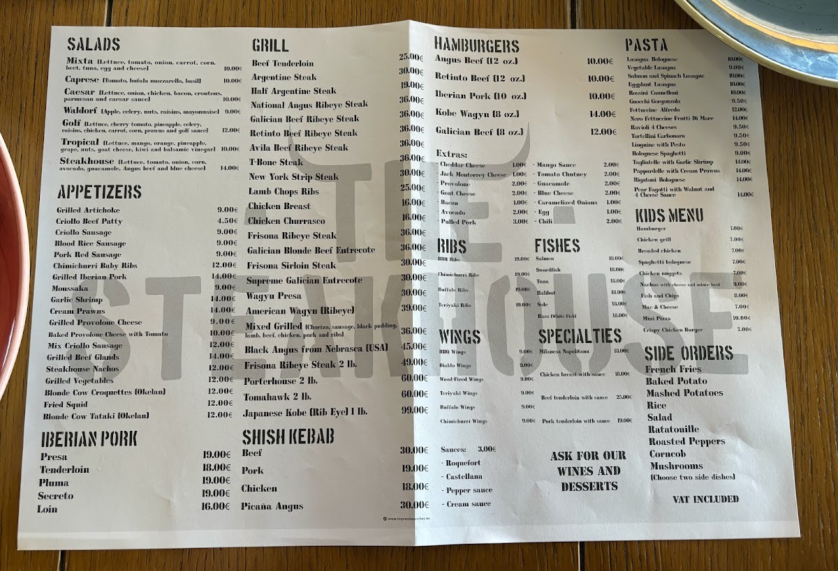 The Steakhouse Menu